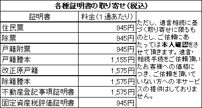 遺言相続研究会では、Web特別価格にて手続きを代行させていただきます。ご利用料金についての詳細は無料相談コーナーよりお問い合わせください。