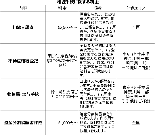 遺言・相続手続料金表(WEB版)